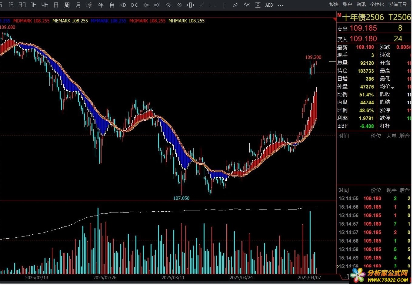 蓝色变红色,做多趋势。