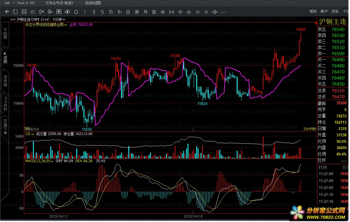 //输出止损:IFELSE(0>=TNY,NN,TT),颜色:FF00FF,线宽为2