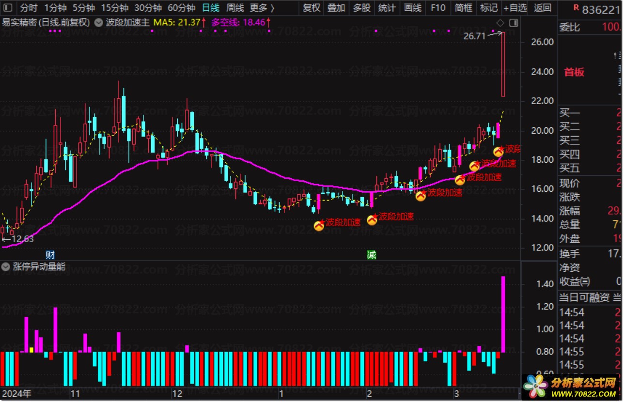 立即在主图触发【波段加速】信号,通过红柱爆发、火焰图标、中文提示三重预警,为交易者锁定趋势加速黄金介入窗口。