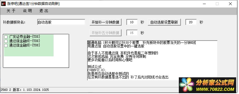 通达信盘中自动补1分钟数据工具 下载解压即可,绿色不用安装,但要防止杀毒软件将其删除,需加入其白名单。 ![]() |