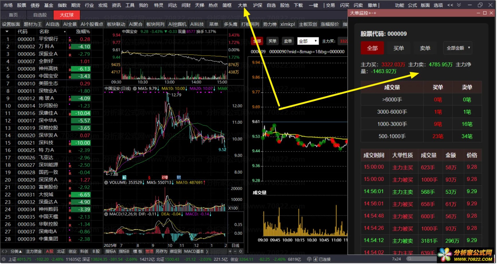 ![]() ![]() 2. 顶栏增加了大家要求的同花顺大单监控。