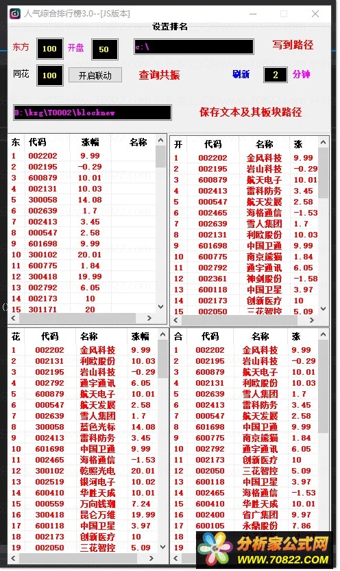 人气共振3.2(东方财富 开盘啦 同花顺) 人气共振小工具 程序和DLL 必须存放同一目录下