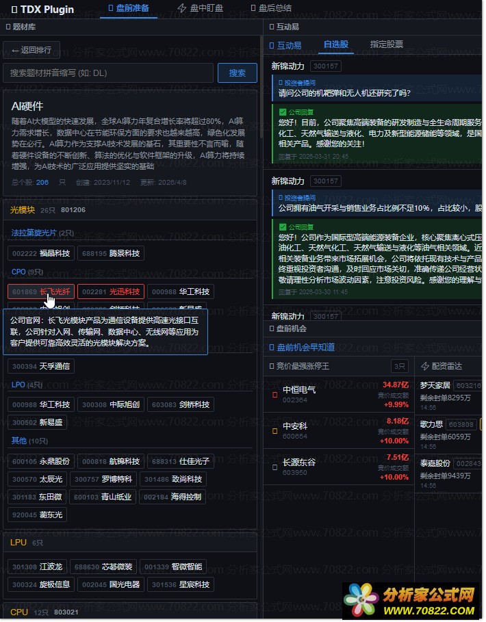 TDX Plugin 一个比较实用的好东西 这是从网上得来的,有兴趣的可下。盘前、盘中、盘后都有丰富的内容。