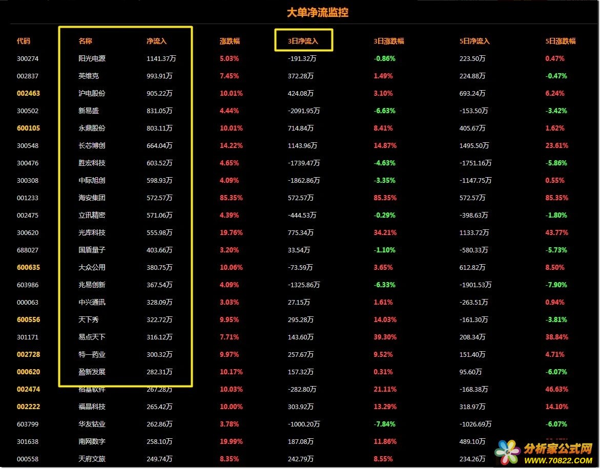 [小工具]资金大单金流入,每天市场最强势资金,看清方向 盘中实时,大单净流入网页版,可以自定义,网页版和,放通达信company文件夹里,都可以看懂资金进攻方向