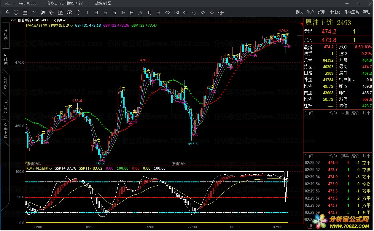 顺势高频抄单主图交易系统旨在通过复杂的价格模式识别,为交易者提供精准的买卖信号。该系统利用文华财经平台的强大数据处理能力,结合近期最高价、最低价、开盘价、收盘价等多重指标,构建了一个动态适应市场的交易策略。它不仅能够识别趋势的方向,还能够捕捉短期价格波动中的交易机会。