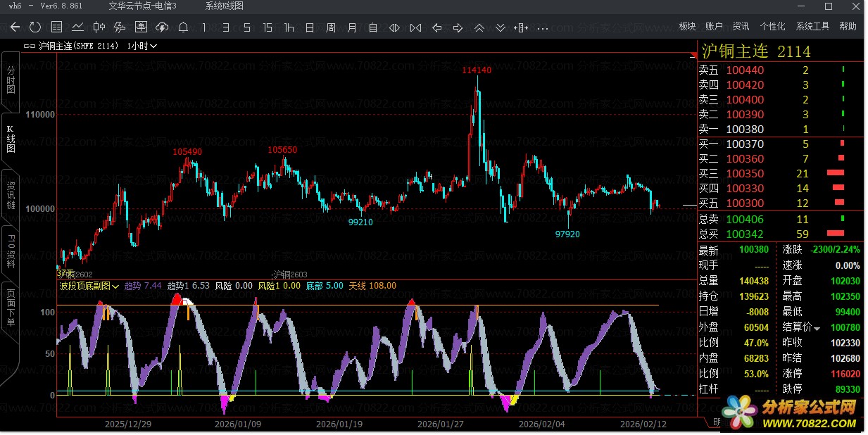 〖波段顶底副图〗捕捉股票买卖点的智能指标公式 在变幻莫测的股市中,如何精准识别波段顶部与底部,成为每位投资者梦寐以求的技能?“波段顶底副图”公式应运而生,这是一款基于文华财经平台开发的高效股票指标公式,专为短线波段交易者量身打造。