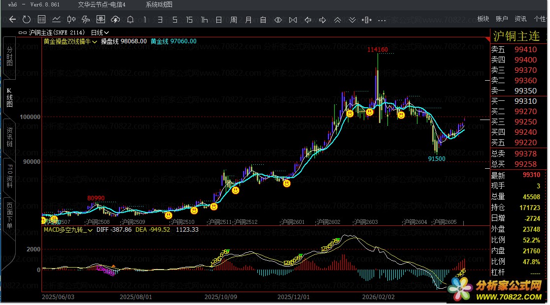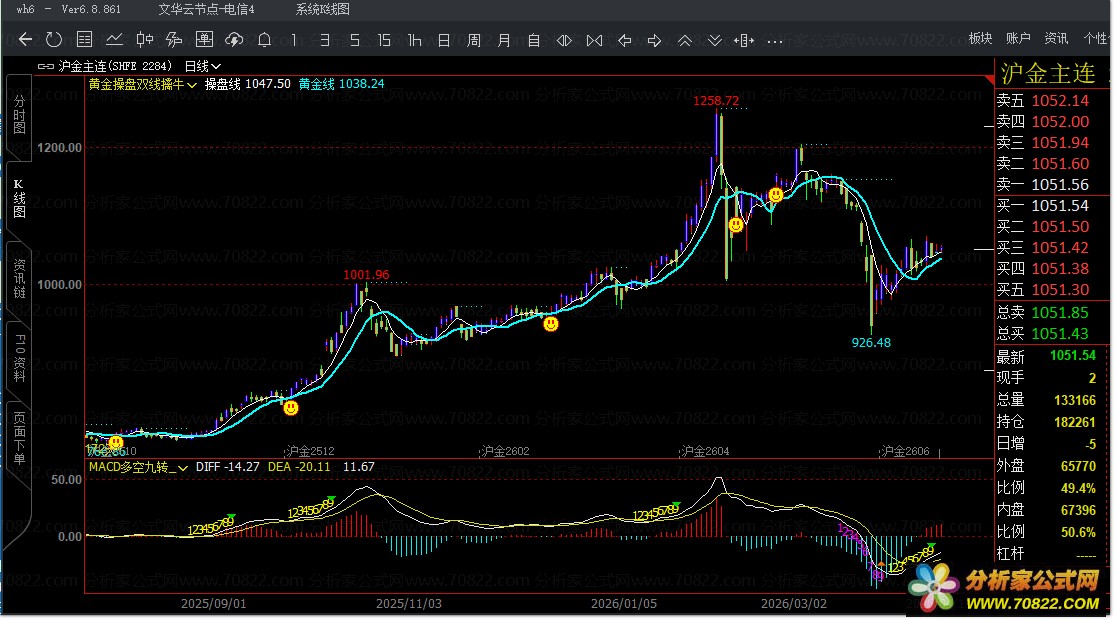 文华财经〖黄金操盘双线擒牛〗主图,底部启动擒牛+筹码突破精准信号 本公式是专为文华财经打造的**主图操盘指标公式**,融合**5日操盘线+10日黄金线**双线趋势、多周期筹码突破算法、立桩量信号与长短中线趋势判断,一站式解决股票、期货趋势识别、底部启动捕捉、买卖点定位难题。