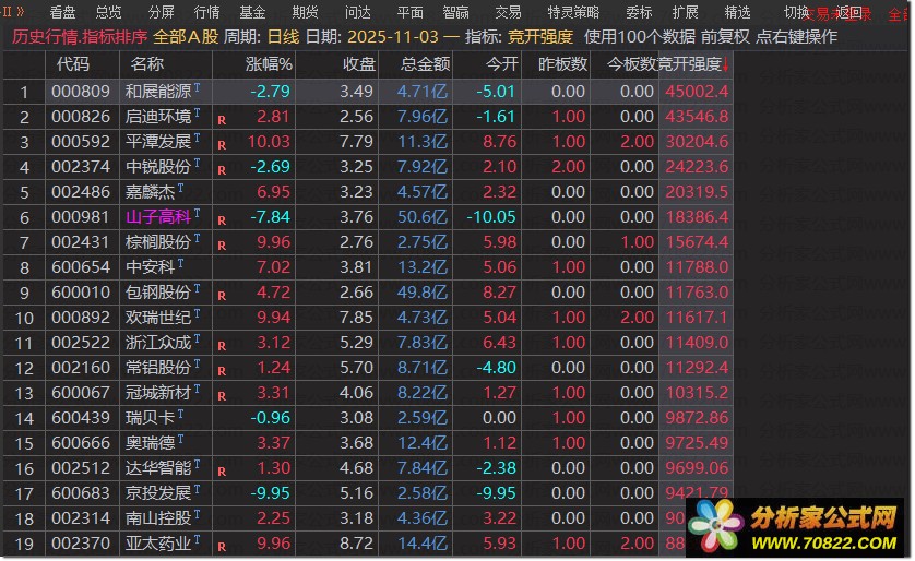 竞开强度排序指标,完美参考强度,9:25后信号全天不变 竞开强度是竞价必备的参考竞价值,不论是首板还是一进二或高板位均可参考。