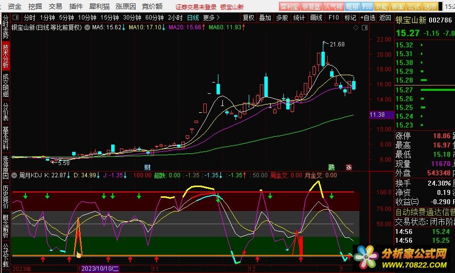 周金叉:IF(CROSS(周K,周D),40,0),LINETHICK2,COLORRED;
