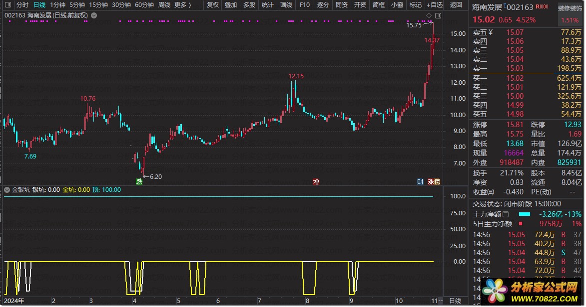『金银坑』副图+选股指标,金坑银坑白金坑 投资机会不容错过