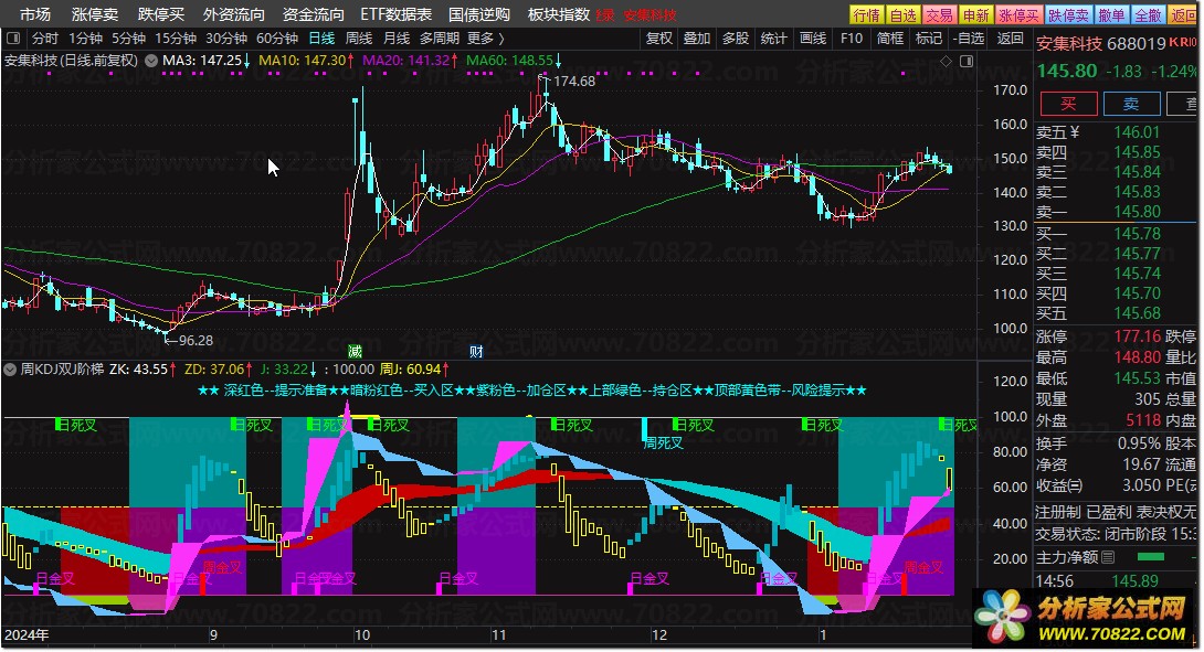 ZK:MA("KDJ.K#WEEK"(9,3,3) ,5),LINETHICK0;