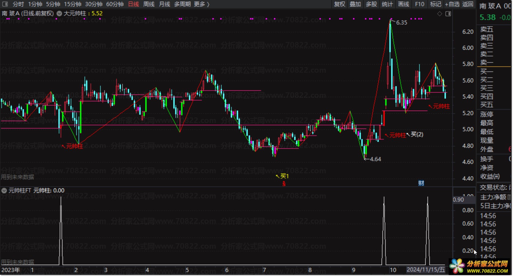 DRAWTEXT (FILT AND NOT(REF(FILT,5)),LOW*0.978,'↖元帅柱'),COLOR0000FF;