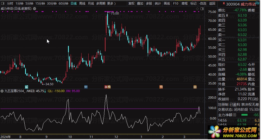 | 【九五至尊2504】副图,进阶学员的指标 本指标是某**学堂的 张*鸿老师 供教学使用 已经解除时限。     |