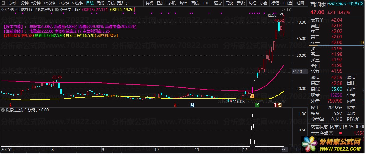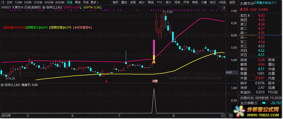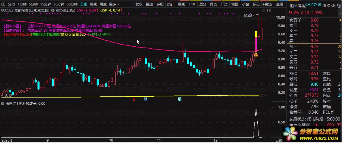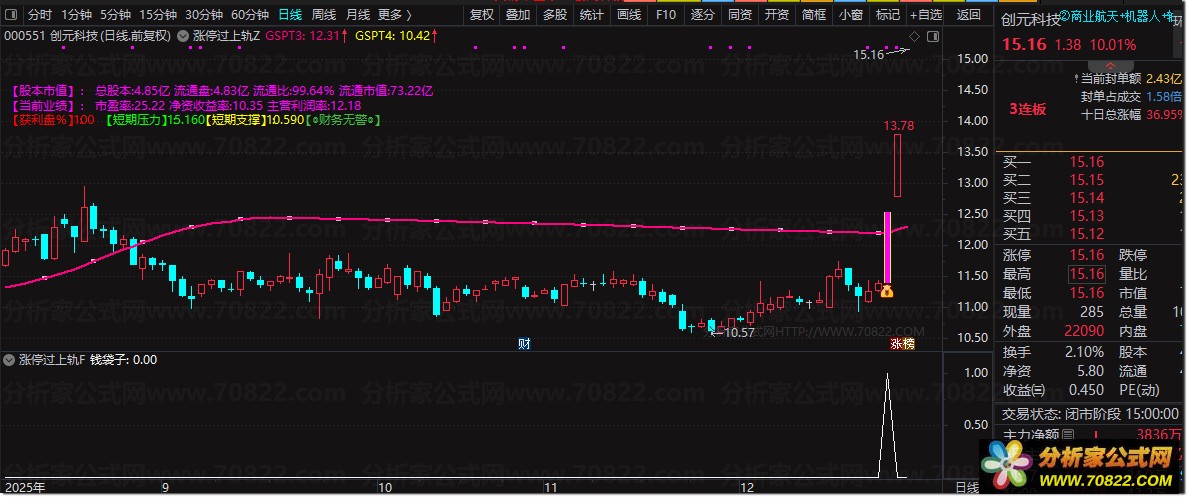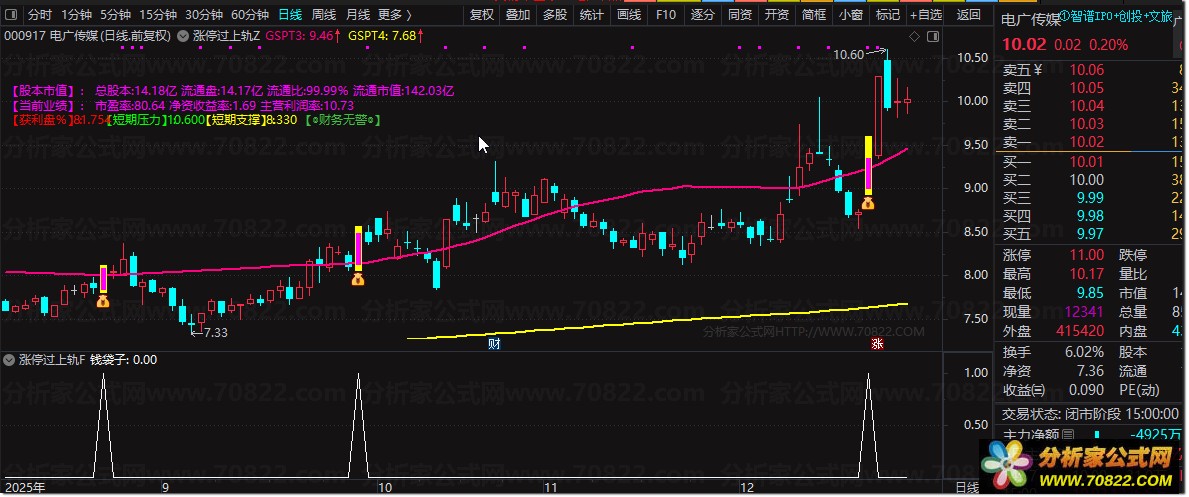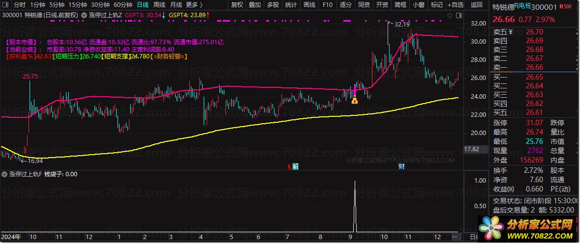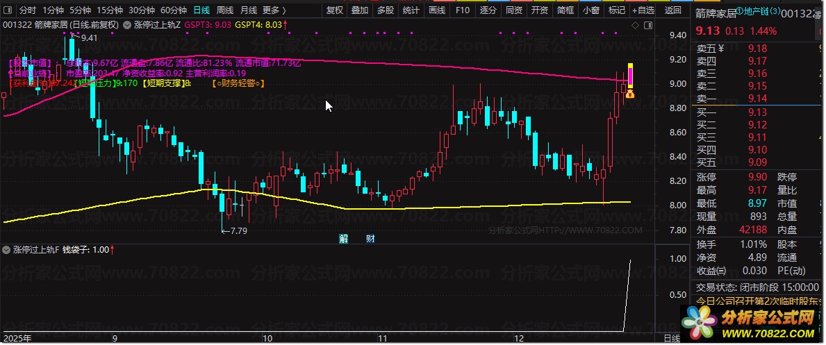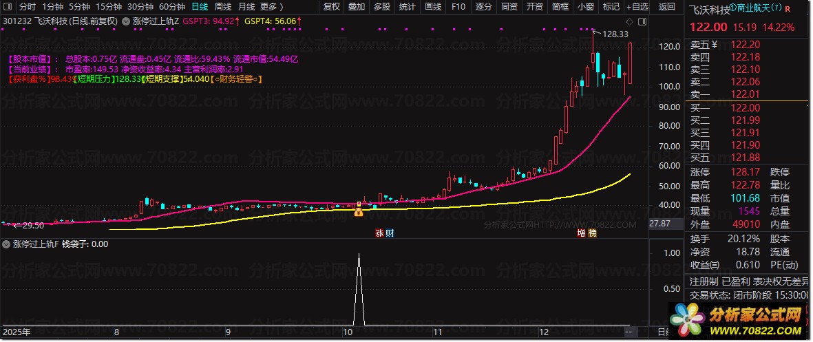 信号触发时,主图指标自动标记钱袋子专属图标,选股器同步精准筛选出带该图标的个股,助您快速锁定涨停过上轨的潜力妖股。