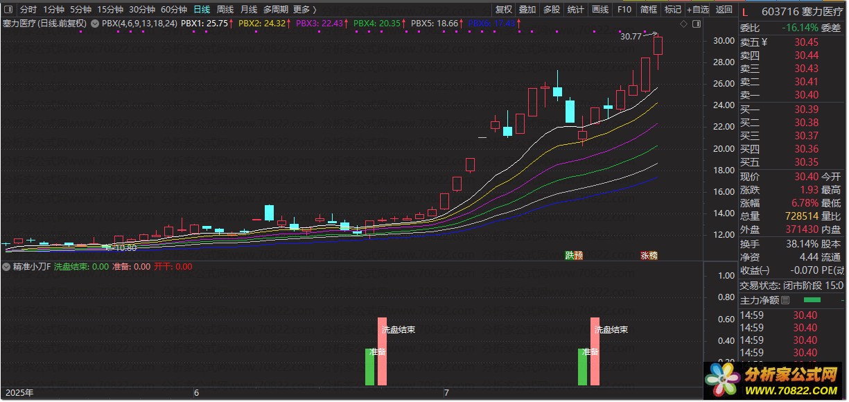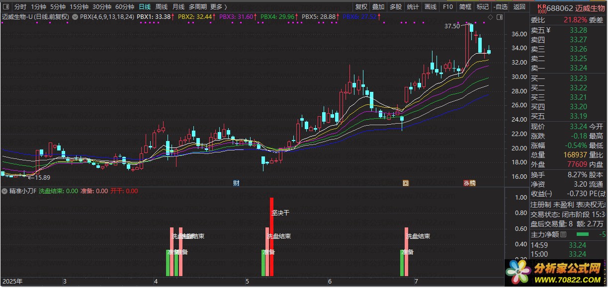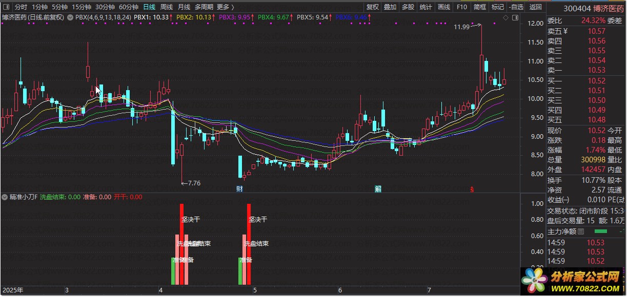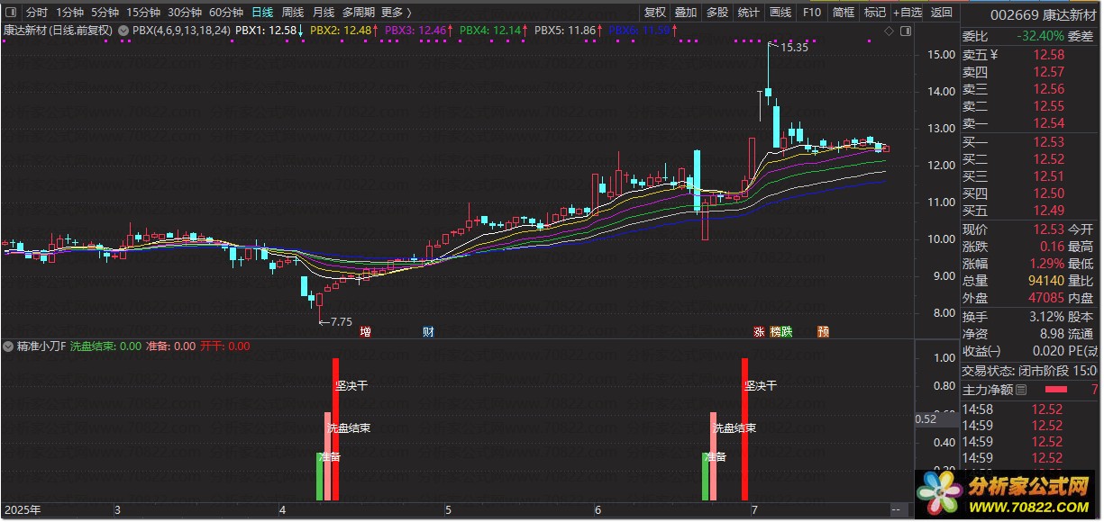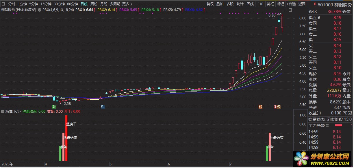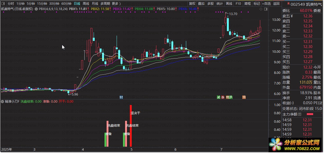 【短线猎手的利器:精准小刀指标解析】 "精准小刀"是专为短线交易设计的智能决策系统,通过多维度数据验证捕捉洗盘结束后的爆发性行情。该指标融合三大核心技术: