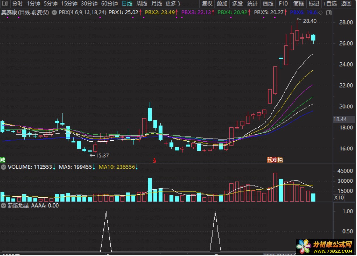 该指标适用于震荡市中的波段操作,建议结合30分钟K线验证成交量配合。特别适合捕捉次新股、小盘股的暴力反弹行情,需注意配合大盘环境使用。