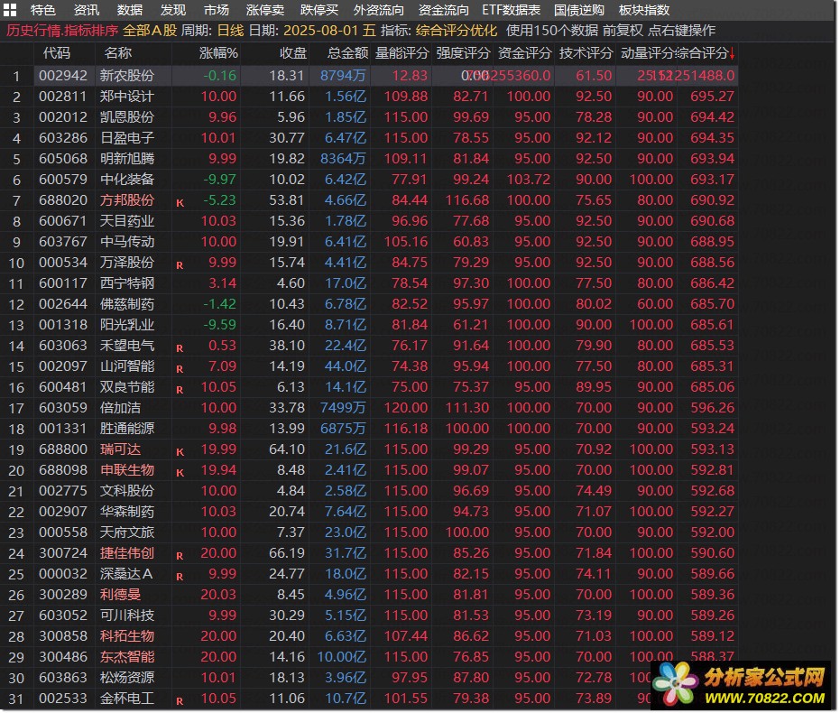 【综合评分优化】系统策略:评级排序指标,寻找至强个股 本指标来源于上网某老师作品,为了更加方便简洁直观的显示评分结果,自己进行了一点改良,可以一步到位的对评级和评分进行排序。