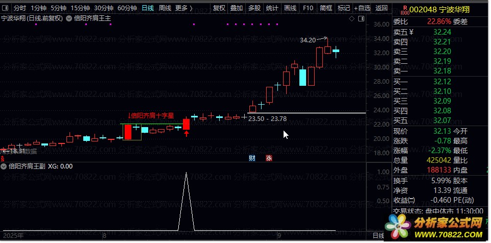 DRAWTEXT(TJA,H*1.05,'↓倍阳齐肩十字星'),COLORRED;