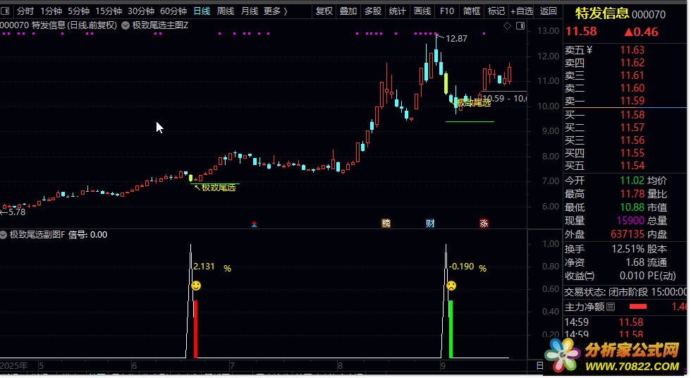 【极致尾选策略】次日冲红率高达95%以上,1主1副1选股组合含FINANCE与WINNER函数,信号稳定且手机电脑通用