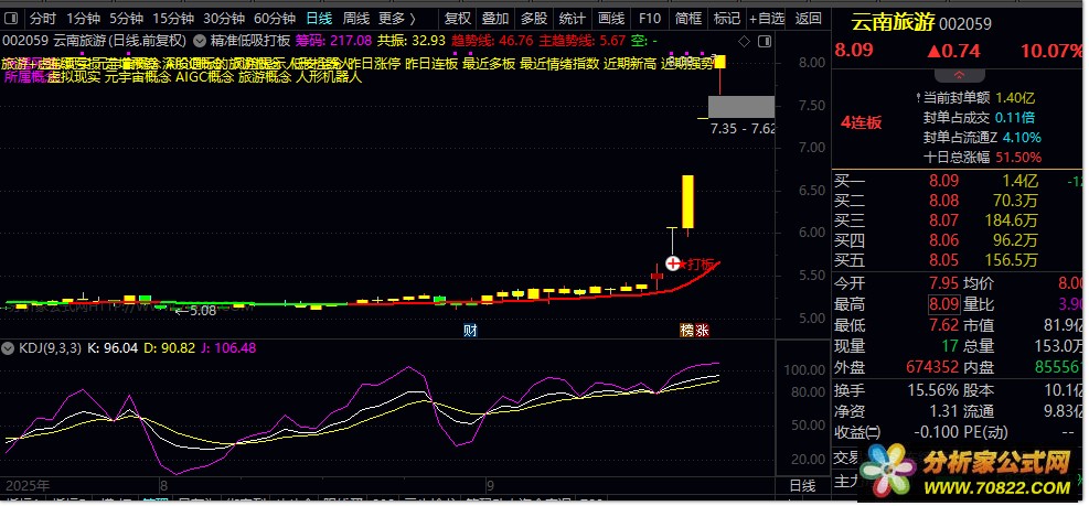 需重点关注两大核心信号:其一为紫色“★低吸”信号(配24号图标),该信号触发需同时满足三个条件——主趋势线金叉0轴、筹码集中度处于0-100区间、技术指标共振值为正,此时构成安全低吸点位;其二为紫色“★打板”信号(配9号图标),触发条件为当日涨幅超过5%且成交量萎缩、筹码分布值低于150,符合条件时即为强势打板机会。
