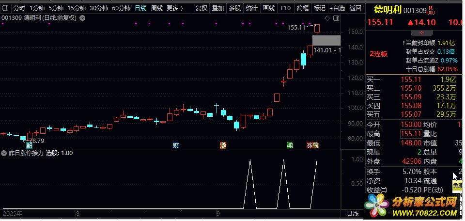 通达信【昨日涨停接力】竞价选股器,专注每日抓龙头股,助您高效筛选牛股!本指标源码配套附图,每日筛选7-10只潜力标的。