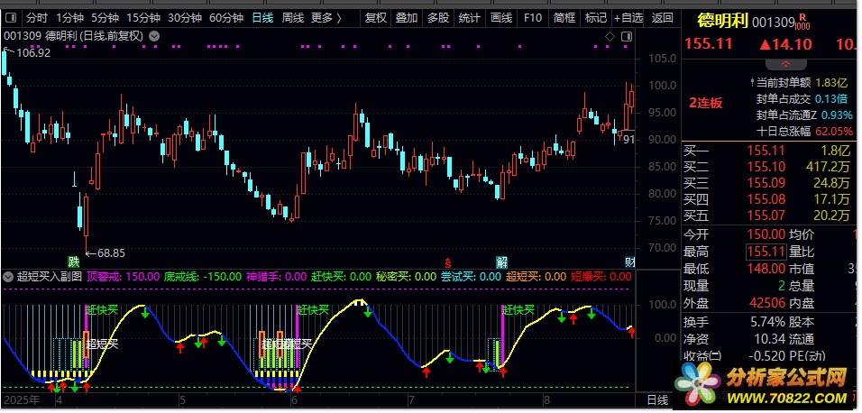 【超短买入副图指标】超短持股一周策略 成功率95%以上 错过必后悔 指标使用说明: