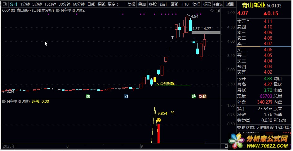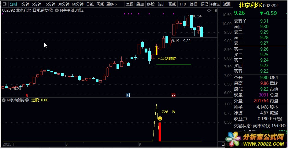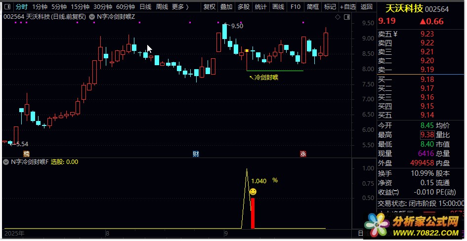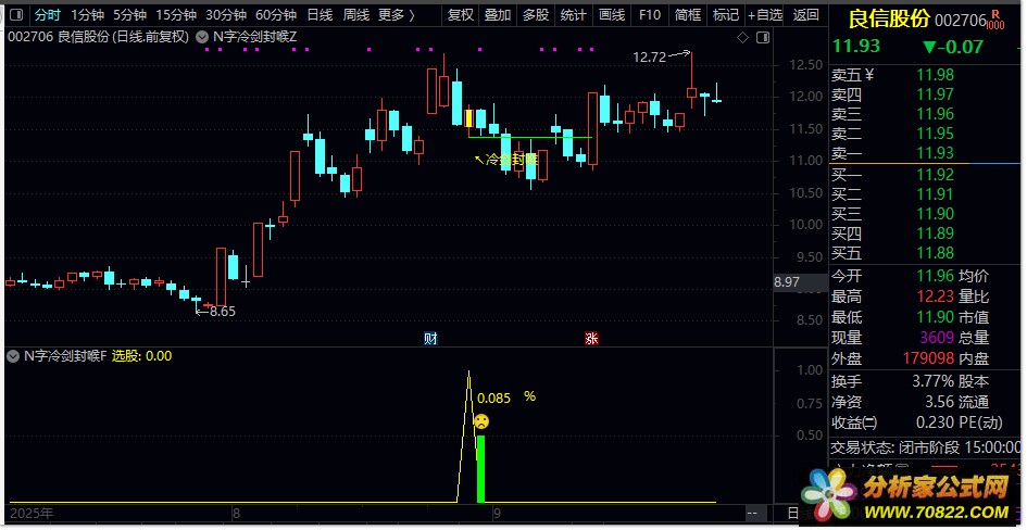 冷剑封喉是一套专注N字涨停回调后再度起涨的尾盘介入模型,信号精简,出击即见血封喉。指标不含未来函数,手机端、电脑端通达信均可直接导入使用,适合短线客追求高胜率涨停回调二次启动行情。