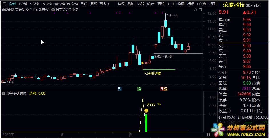 1 信号触发:N字涨停后出现缩量回调,尾盘再次放量上攻时出箭形买点。