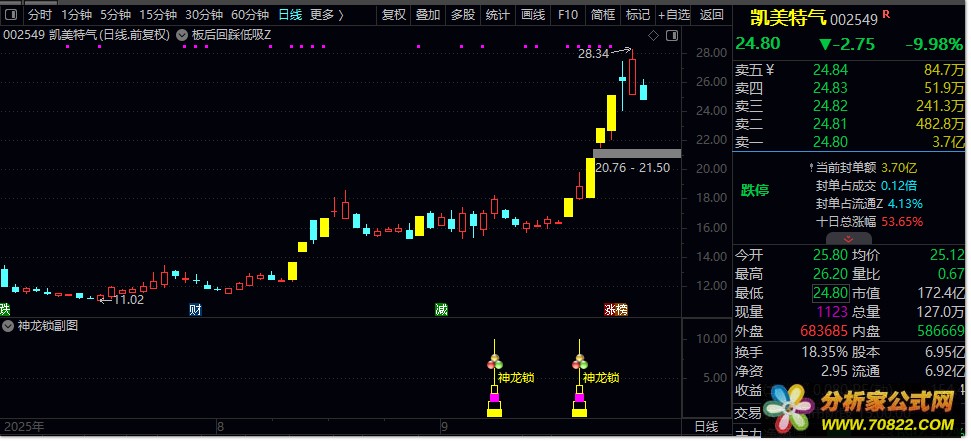 伏击主力拉升启动点:"神龙锁"指标实战指南 指标是一款专为捕捉主力资金拉升启动信号而设计的通达信技术分析工具,它通过智能识别MACD金叉与近期涨停基因,帮助投资者在启动前夜精准布局。