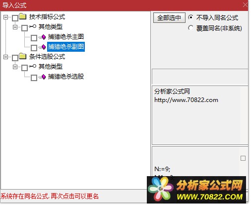* 关于股票公式时间限制,如果在引入大智慧公式,交易师公式或者飞狐公式的时候,发现公式名称栏是空白的,这时候调整电脑时间到1997年,又能出现公式名称,并且能正常显示,可能是公式使用期限已过。