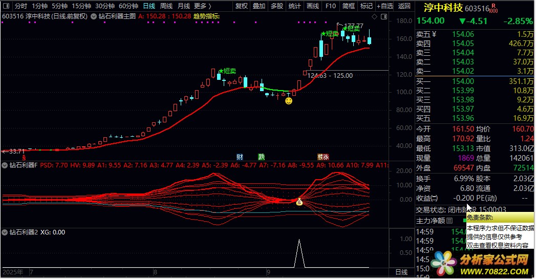 右侧启动后,主图出现“短卖”图标=小波段减仓,非清仓。