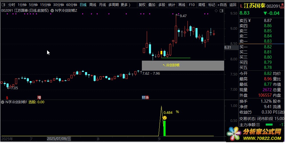• 止损策略:严格以指标标示的绿色横线作为止损位,若股价跌破应及时控制风险。
