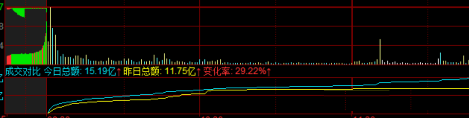 【分时成交对比】分时副图指标:实时监控分时成交量变化 分时成交对比指标用于衡量个股或市场成交活跃度变化,通过对比当日分时成交量与前交易日数据,可精准掌握市场及个股热度变化趋势。