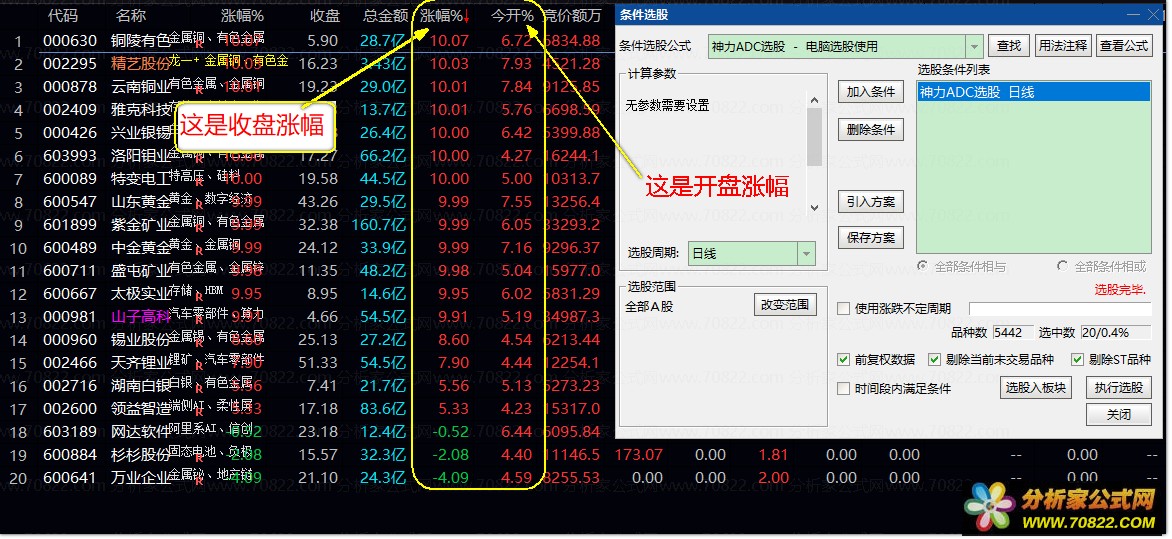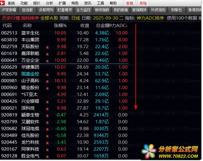 ![]() 电脑排序:(手机没有排序功能,只能选股选出 神力ADC>0)
