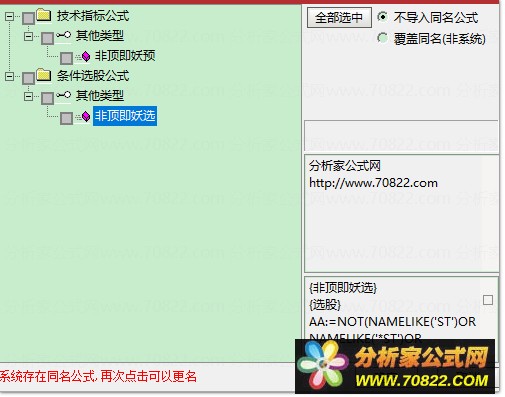 * 关于股票公式时间限制,如果在引入大智慧公式,交易师公式或者飞狐公式的时候,发现公式名称栏是空白的,这时候调整电脑时间到1997年,又能出现公式名称,并且能正常显示,可能是公式使用期限已过。
