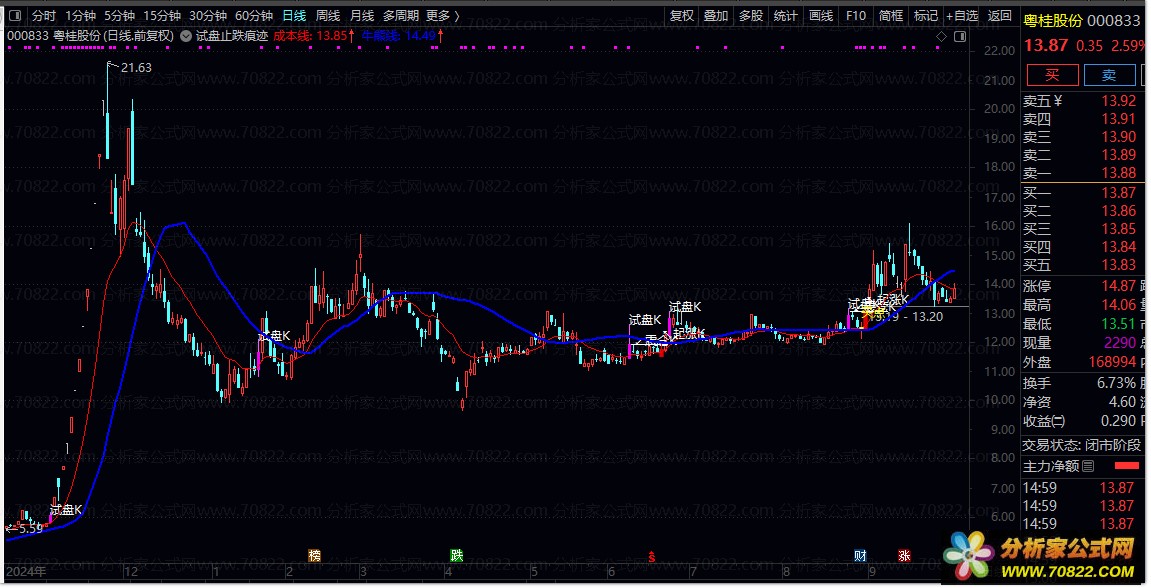 牛熊线:MA(COST(60),20),COLORBLUE,LINETHICK2;