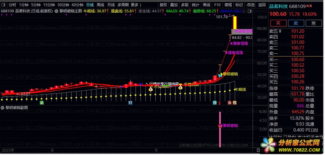 1. 牛熊分界:黄色牛熊线作为多空分水岭,股价上穿时显示"↖走强区"提示