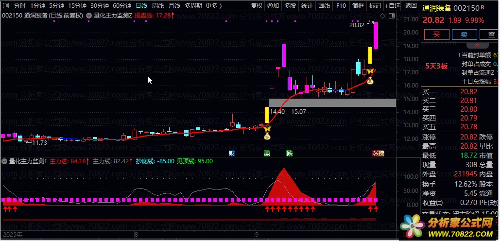 『量化主力监测』揭秘主力动向 公式详解 “量化主力监测主图”是通达信平台上的一个专业指标,通过量价分析和动态均线,精准捕捉主力和游资的进场信号。该公式结合成交量和价格变化,识别大资金动向,帮助投资者在复杂市场中把握先机。