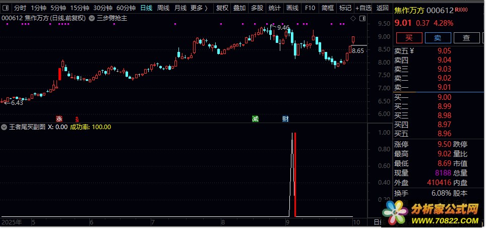 【王者尾买】尾买博弈第二天溢价,副图+选股指标(手机和电脑版通用) 王者尾买副图