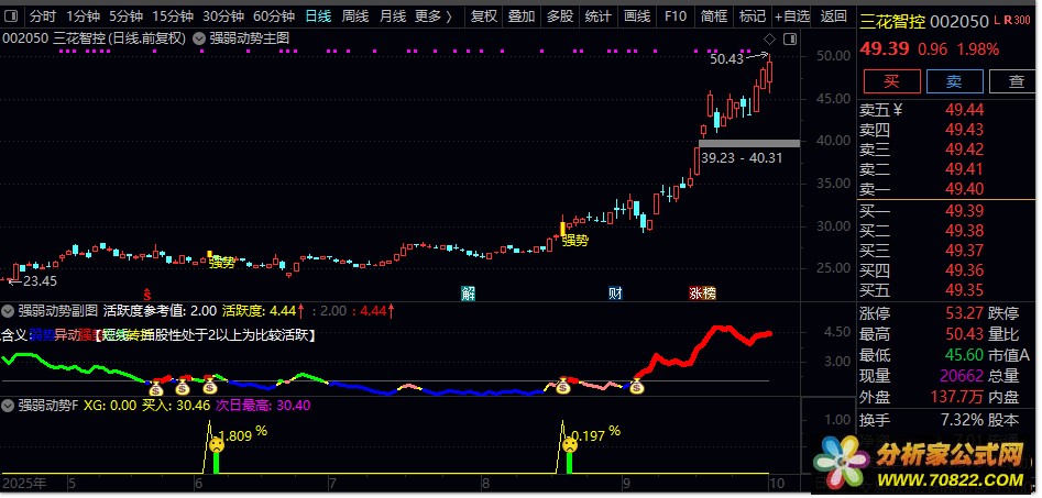 强弱动势以“成本线+双均线+活跃度”三维模型筛选主力正在加速的个股。CS成本线反映资金真实平均成本,20/30日均线判定中期方向,活跃度指标量化日内主力冲动;当三线同向向上且活跃度≥2,即刻出现“黄K+强势”文字,代表主力启动信号,无未来函数,手机电脑通用。