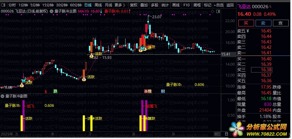 2、出现“←起飞”信号时,表示个股具备短线爆发潜力,可结合分时均线回踩不破或量能持续放大时介入;