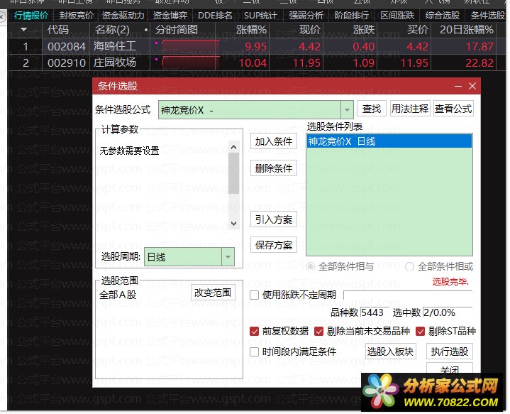 ②竞价选股操作:9:25后至9:30前,按Crtl+T执行选股,可结合.401排序功能或设置竞价预警,灵活适配个人操作习惯。本通达信竞价选股公式支持自定义参数调整,适配不同交易策略需求,提升早盘竞价效率与精准度。
