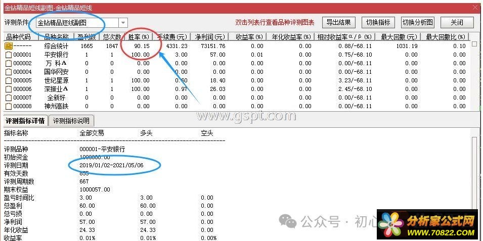 二、实测数据显示,2019年1月1日至2021年5月6日期间,采用收盘价平仓策略持股3天胜率达90%左右,具体测评数据截图可查。配套包含副图指标、选股器、DLL文件安装方法及使用说明。