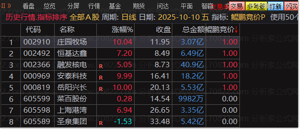 【鲲鹏竞价】擒龙术,早盘捕捉强势股的智能引擎,电脑手机端通用 ===== 2025/10/13 15:40:25 ====== 有朋友要求发今天的竞价选股结果:应了。 全部成功的。 精品从来不缺,缺的是发现! ===== 2025/10/12 9:40:25 ====== 鲲鹏竞价包含:排序副图1个和竞价选股1个