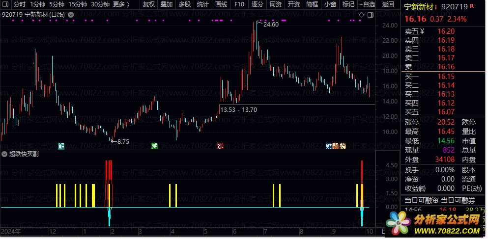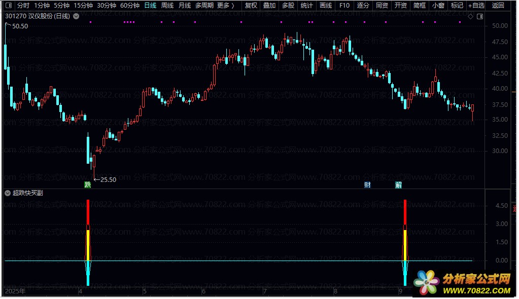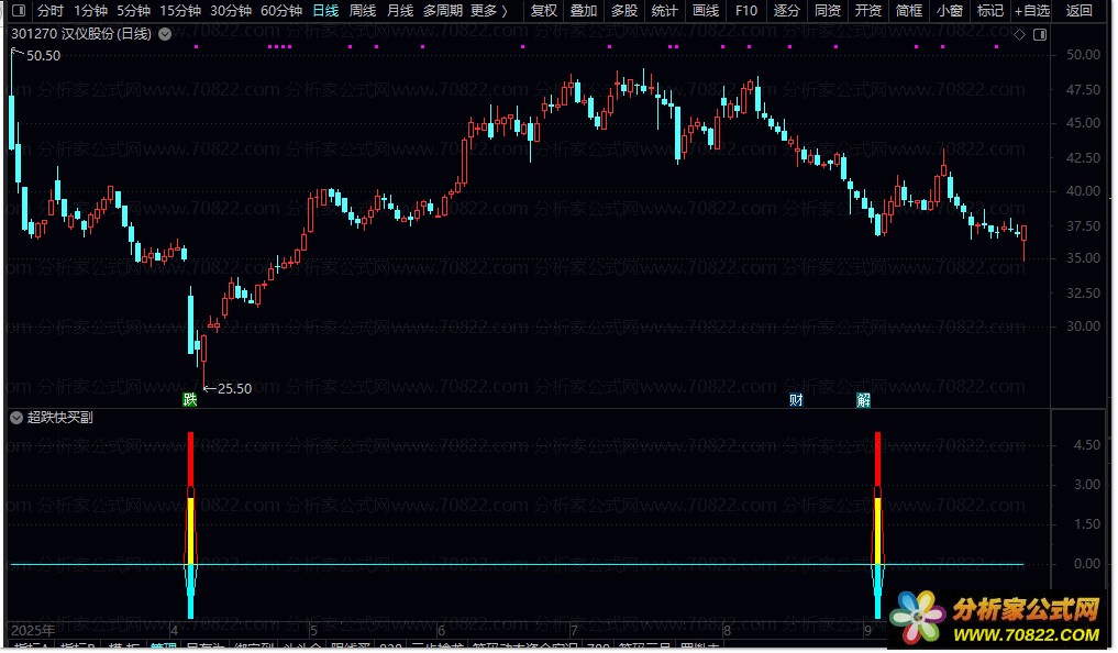 『超跌快买』副图+选股指标详解:精准巧擒妖庄实战经验分享 今日为大家精心分享的指标是“超跌快买”副图指标,此指标还附带选股功能,且完全不包含未来数据,安全可靠。该指标的核心目标在于,精准锁定市场在经历一轮显著下跌后所形成的底部区域,同时敏锐捕捉股价刚开始拉升时所暴露出的关键性、具有操作价值的特征信号,助力投资者巧擒妖庄。