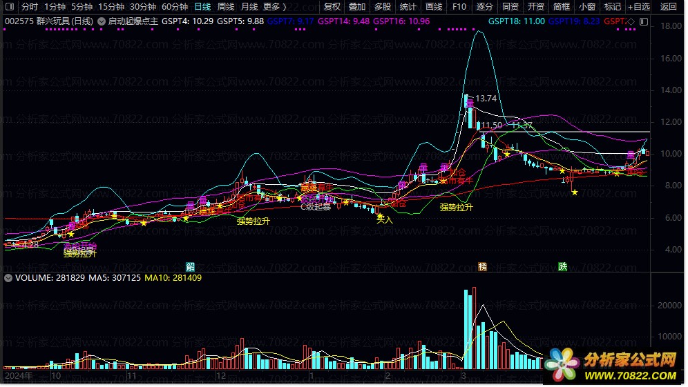 4. 量能确认:突增量能时标注“量”,验证资金介入力度;