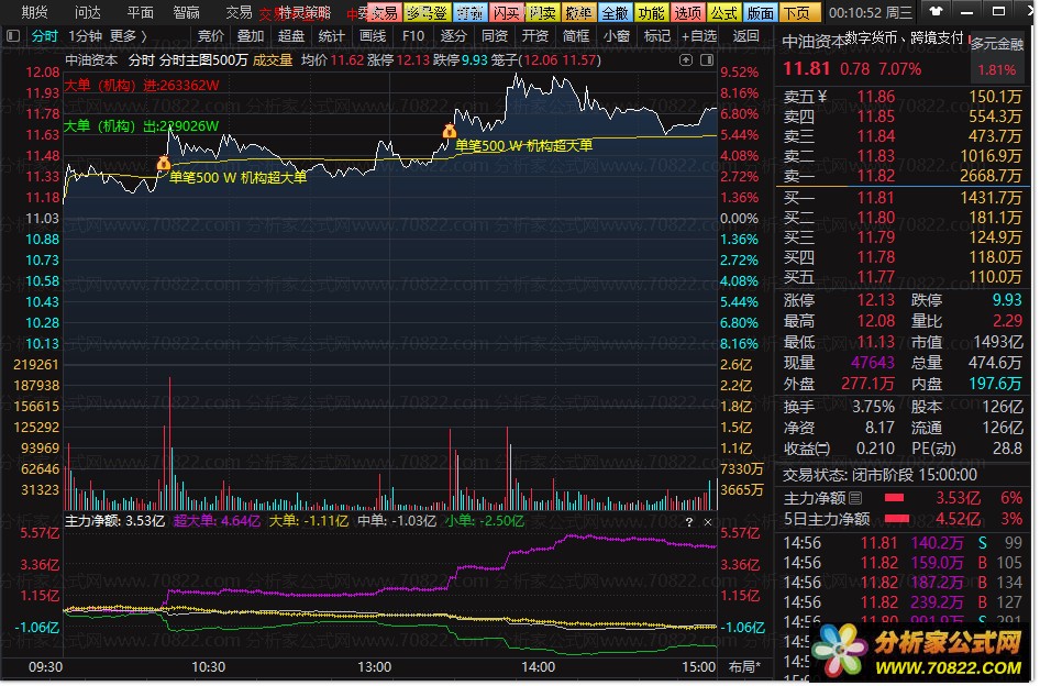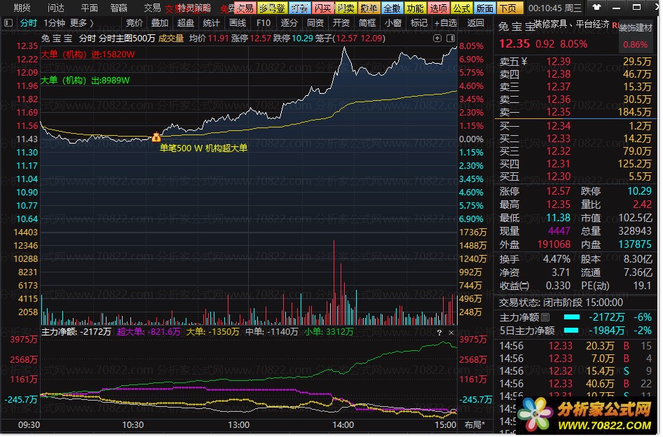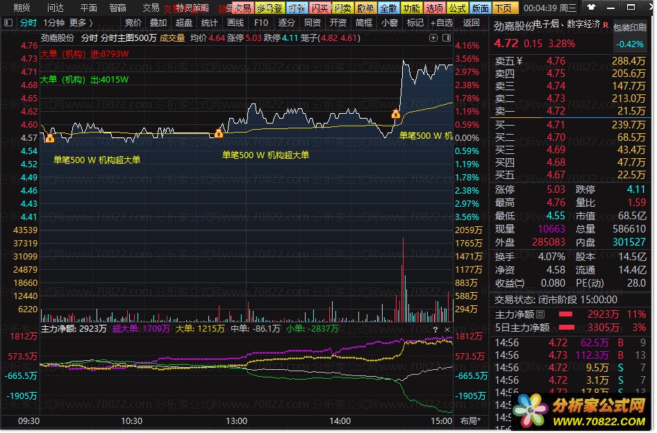 这款分时主图指标所蕴含的500W机构超大单逻辑,为短线投资者提供了比传统L2数据更为直观且易用的分析工具,堪称短线操作中的神器。