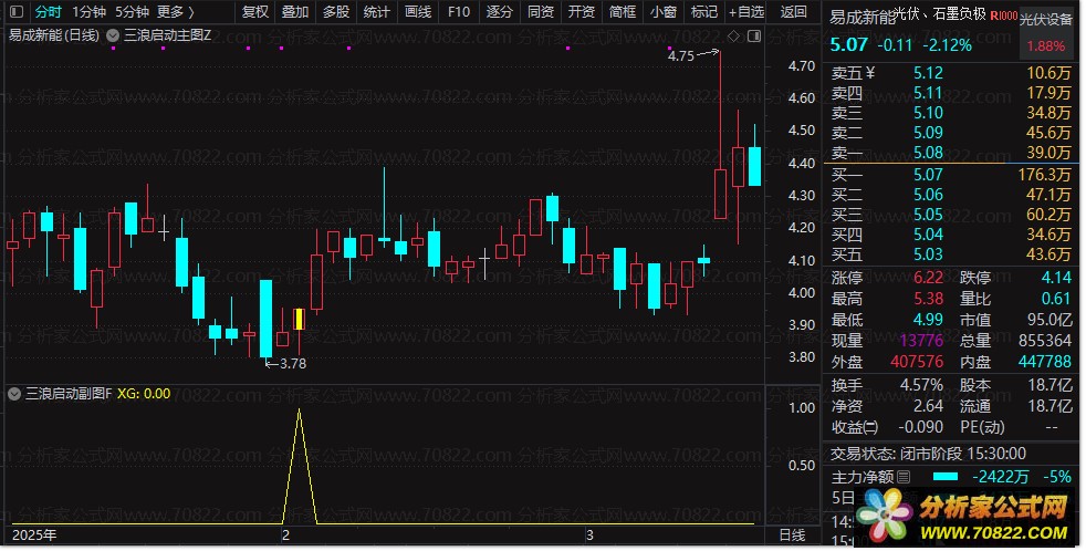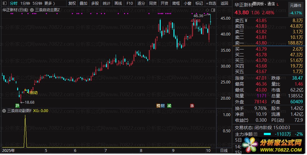 本【三浪启动】技术指标包含1个主图、1个副图和1个选股公式,且无未来函数干扰。