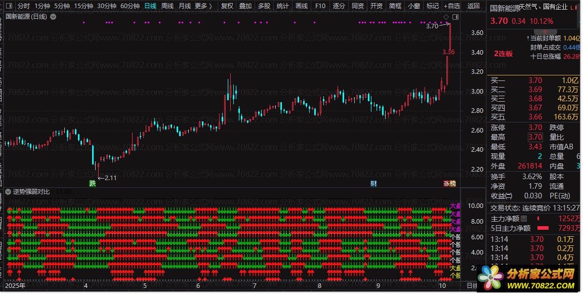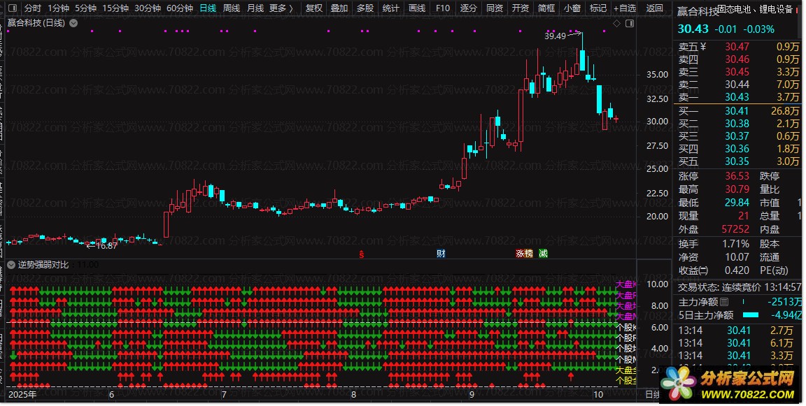 『逆势强弱对比』指标,共振原理 对比大盘与个股KDJ、RSI、均线及MACD指标 编辑思路:通过对比大盘与个股的KDJ、RSI、均线及MACD指标,判断个股相对于大盘的领先滞后状态及强弱程度,并分析其共振关系。操作需下载大盘数据,确保指标对比有效性,助力精准把握个股与大盘的关联动向。