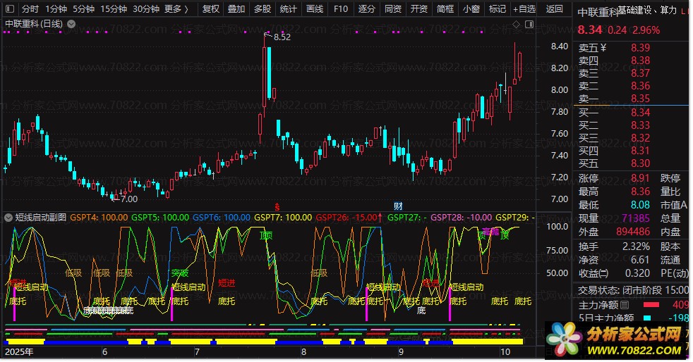 建议在通达信软件中将其设为副图指标。当指标在低位发出“短线启动”等买入信号,并且股价配合放量上涨时,可考虑介入。同时,结合整体市场趋势进行操作,将显著提升短线交易的成功率。